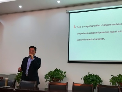 卢植教授做了题为“隐喻翻译过程中的眼动与认知加工”的讲座。卢教授通过生动形象的比喻,介绍了什么是隐喻、关于隐喻能否翻译的三种观点、隐喻翻译研究的主要使用工具等,着重介绍了Translog的功能和使用,以及Eye-tracking技术的相关实验和研究,并结合各种实例说明人类的信息加工主要依赖于视觉。