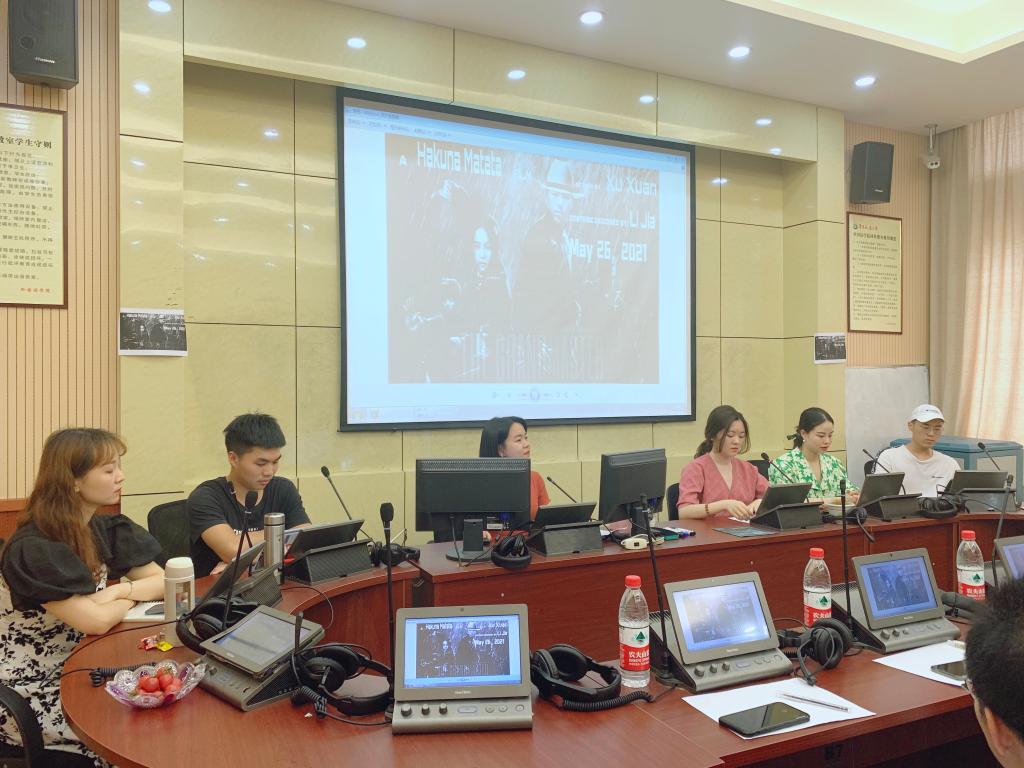同学们用中英双语完整地模拟了电影发布会,笔译专业同学扮演中外记者用双语对主创团队进行提问,主创扮演同学根据本身对电影的理解,问题回答条理清晰、有理有据,多次收获现场热烈掌声。口译专业同学凭借扎实的口译功底出色完成现场交传任务。现场气氛热烈,同学们的精彩表现获得现场老师们的交口称赞。