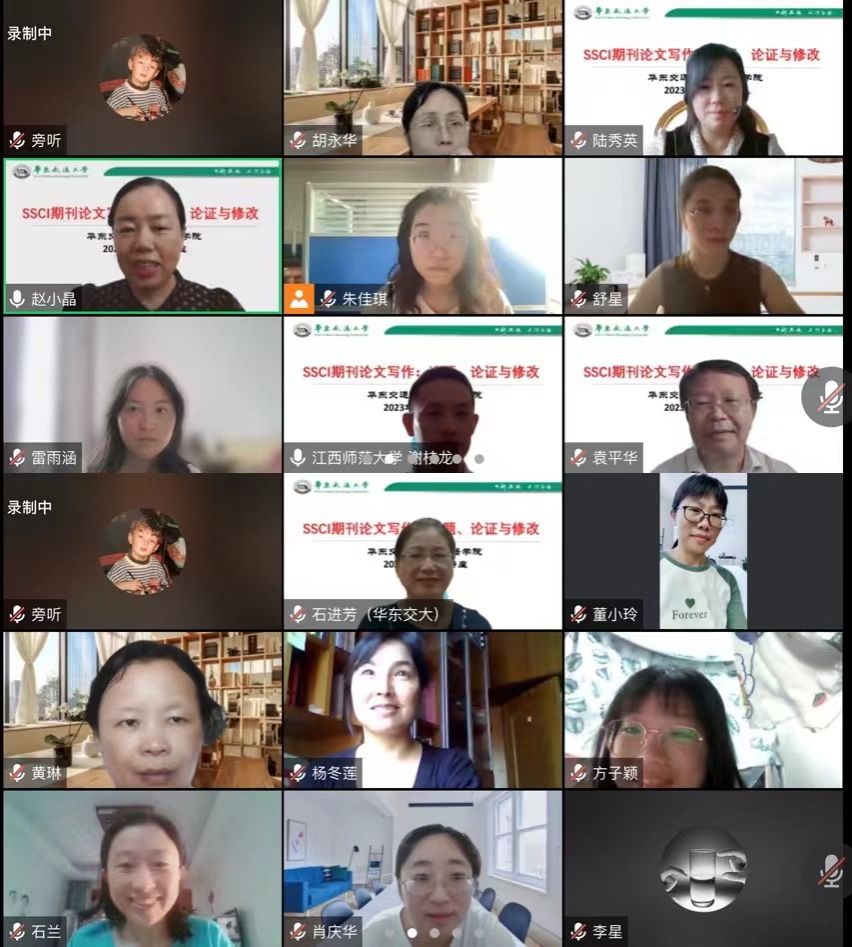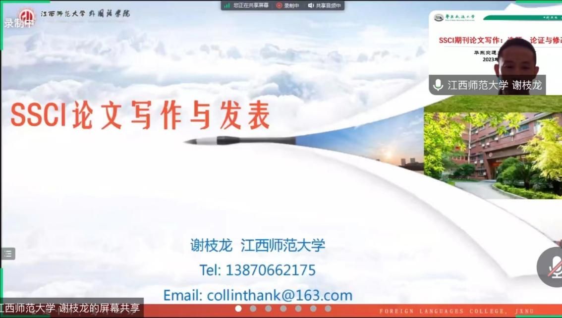 为加强学院学科建设,增强师生对国际期刊论文写作的了解,2023年 7月3日学院举办了主题为“SSCI期刊论文写作:选题、论证与修改”的系列学术讲座。讲座以线上形式进行,由江西师范大学谢枝龙教授、湖南师范大学肖越海教授和正妹AV