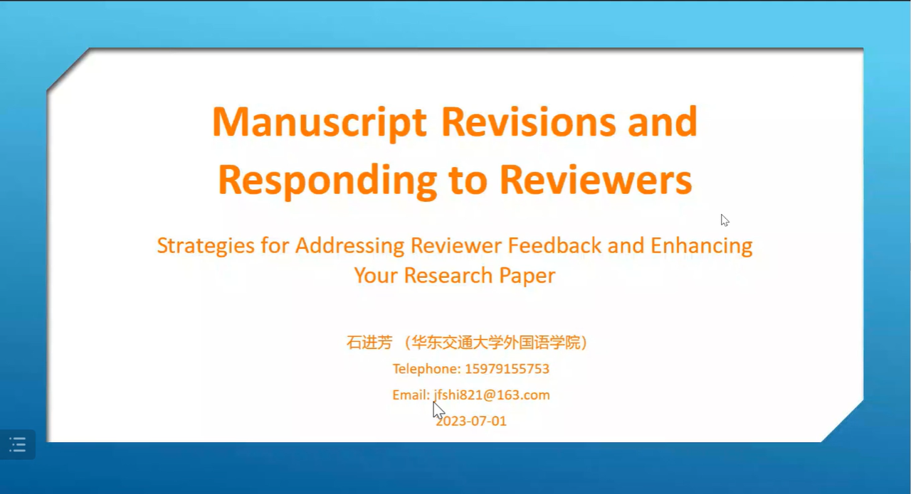 石进芳教授对论文准备、提交和审稿方面的具体细节做出了细致介绍。对于论文修改这一关键步骤,石教授结合自身经历,强调了做好文章综述和实验设计的重要性,并且要从审稿人角度出发,认真采纳修改意见。