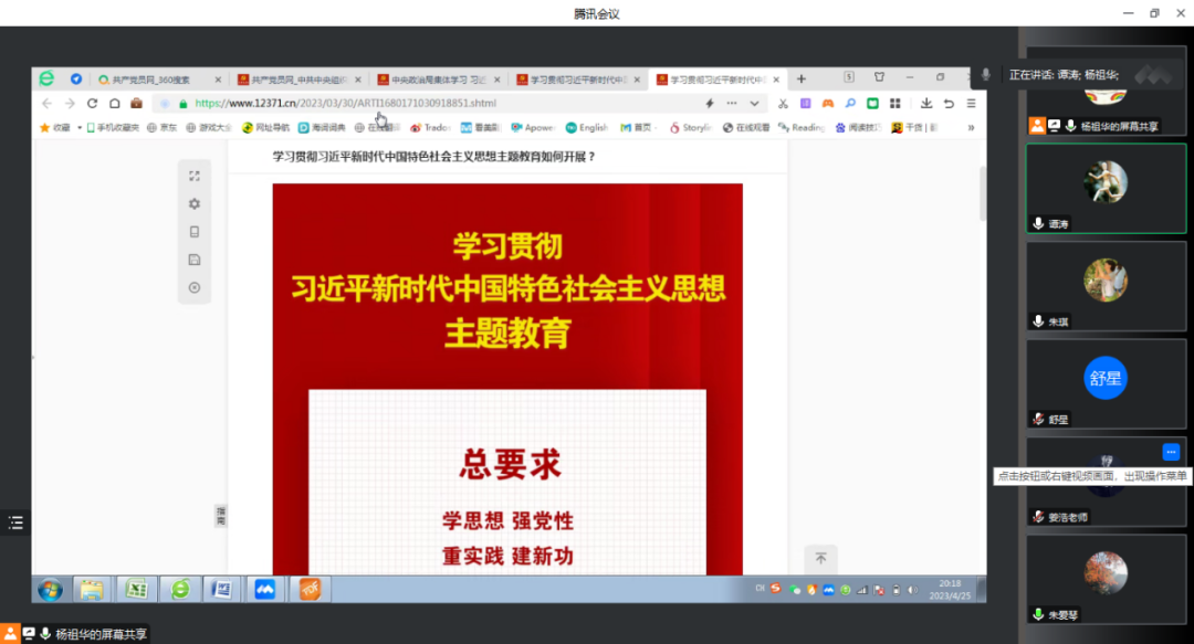 4月25日,英语教工党支部借助腾讯会议平台开展“学习贯彻习近平新时代中国特色社会主义思想”主题党日活动并交流学习心得。