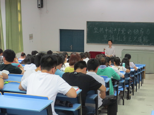 讲课的主题为“坚持中国共产党的领导与坚持社会主义道路”。围绕这一主题,陈青平向同学们展开了一系列的讲解和分析,并从党的伟大、正确性这一角度展开话题,教育我们要树立对党的正确认识,义无反顾、毫不动摇地坚持党的领导,端正自己的行为。讲课过程中,陈青平还给我们讲述了中国共产党从诞生到发展壮大 的艰辛历程和为此作出了重大贡献的三个人:孙中山,毛泽东,邓小平。对于中国的基本方针路线,还有我国的社会主义市场经济,陈青平也作了深刻的分析,指出我们还处于社会主义初级阶段的现状,目前我们的目标是采取先富带动后富的方式,实现共同富裕。课程进行到后期时,同学们就一些问题向老师进行了求解,现场气氛十分热烈。