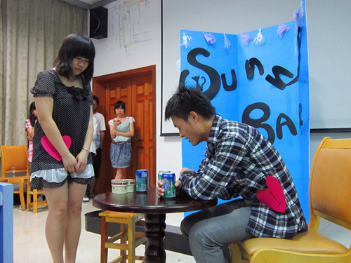 外语社主办的“爱show”英语剧决赛在北区15栋116举行。经过初赛的角逐,共有6个班级进入本次比赛的决赛。正妹AV