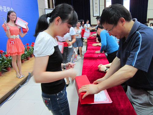 本站讯(记者徐谢哲甜 肖家玮报道)5月14日,为期3天的2012年全国大学生英语竞赛决赛暨第七届“赣江杯”大学生英语竞赛(江西赛区)迎来了比赛的最后一天。经过前一天笔试和听力的筛选,50位A、B组选手、55位C组选手以及50位D组选手入围口语决赛。