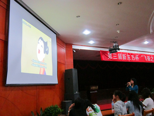 与江西财经大学、东华理工大学、江西农业大学联合主办的第三届新东方杯“飞扬之声”英文配音大赛总决赛在东华理工大学软件楼举行,来自四大校区英语教师及外教担任本次比赛的评委,正妹AV