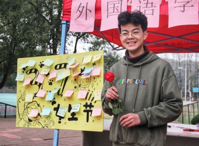 男生们纷纷在心愿墙上留下对女生们的节日祝福。“‘红彤寛摆掐腰衣,逸裙飘洒青春丽。’大家都知道我们学院男生很少,但是女生节,没有惊喜怎么行。我希望通过举办这次活动能够给女生们留下一个甜蜜又幸福的节日记忆,让校园里因为有她们的存在变得格外绚丽。”活动负责人之一,18级英西复语邹江说。