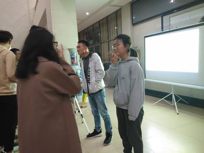 “虽然过了四六级,但我们觉得口语仍需进一步提高。英语角提供了一个很好的平台,让我们能面对面与外教交流,更实际地锻炼了我们的口语。之前就来过几次英语角,我们感觉英语角的氛围很好。但是很多时候英语角时间与选修课的时间冲突,要是周末晚上也有英语角的话就更好了。” 17级经管学院会计三班的康璐、郑迁这样说道。