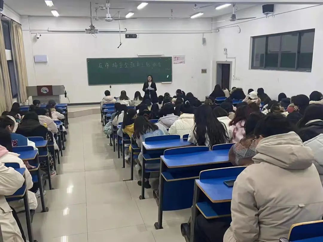 学子返校后的学习生活状态,院党委副书记光辉、学工办副主任兼团委副书记熊弯、钟雪倩老师以及兼职辅导员刘源开展了新学期查寝工作;同时,为响应学校关于推动防范电信网络诈骗工作部署,辅导员召开了返校后第一次“反诈骗安全教育”主题班会。