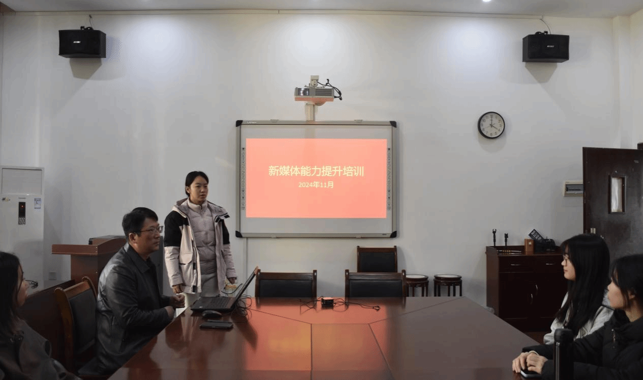 于11月27日下午4点在教15栋308会议室开展了新媒体能力提升培训第一讲——新闻摄影技巧与理论。本次培训由党委副书记光辉老师主讲,新媒体中心全体成员参会。