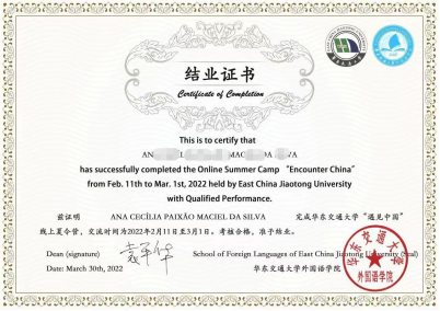 6. La Escuela de Lenguas Extranjeras de la Universidad de Jiaotong de China Oriental expedirá un certificado de finalización a quienes superen la evaluación al término del curso.