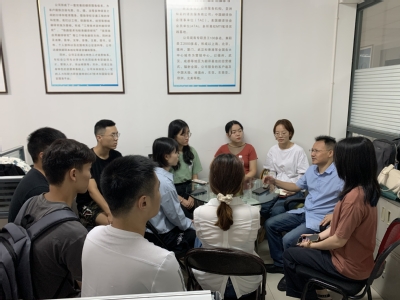 报告会结束,同学们参观了科技园园区,南昌译道翻译有限公司总经理廖为应与学生代表进行了创新创业座谈会。廖总告诉研一同学们在打好翻译基本功的基础上,不要局限于做只会翻译的匠人,更要积极获取创新创业技能。他以曾在译道工作后来成功晋升比亚迪海外市场管理层的学长为例,建议同学们多多抓住类似机会和平台锻炼自己。