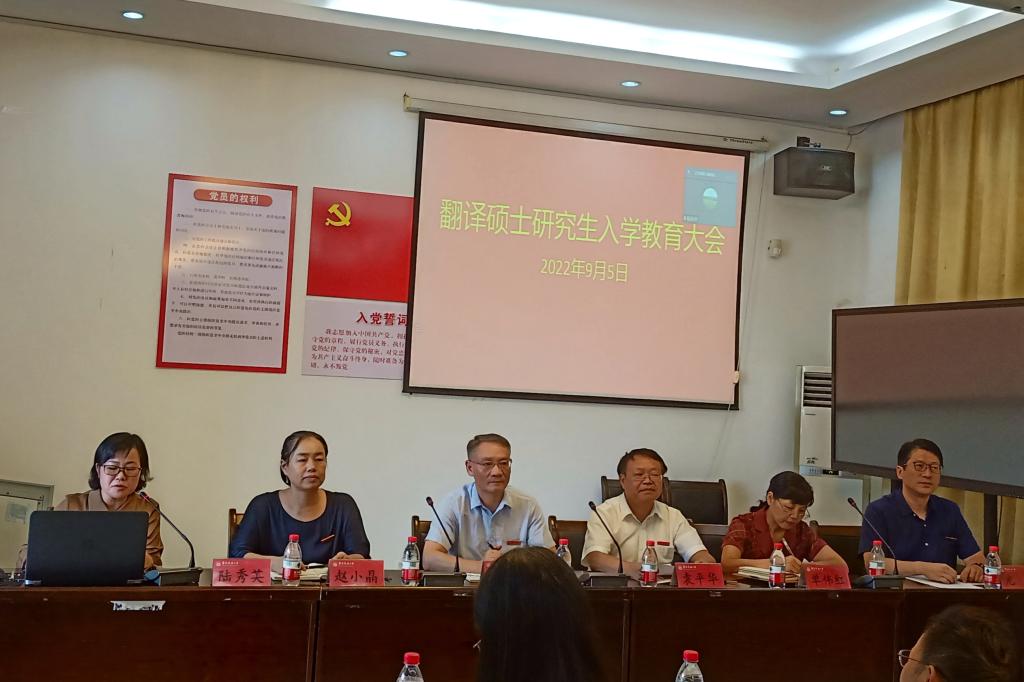 2022级翻译硕士研究生入学教育大会在博雅楼102报告厅顺利举行。会议由陆秀英副院长主持,出席会议人员包括全体院领导、相关专业导师及科室负责人、2022级翻译硕士研究生出席会议(含全日制及非全日制)。