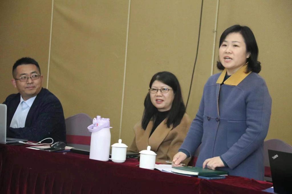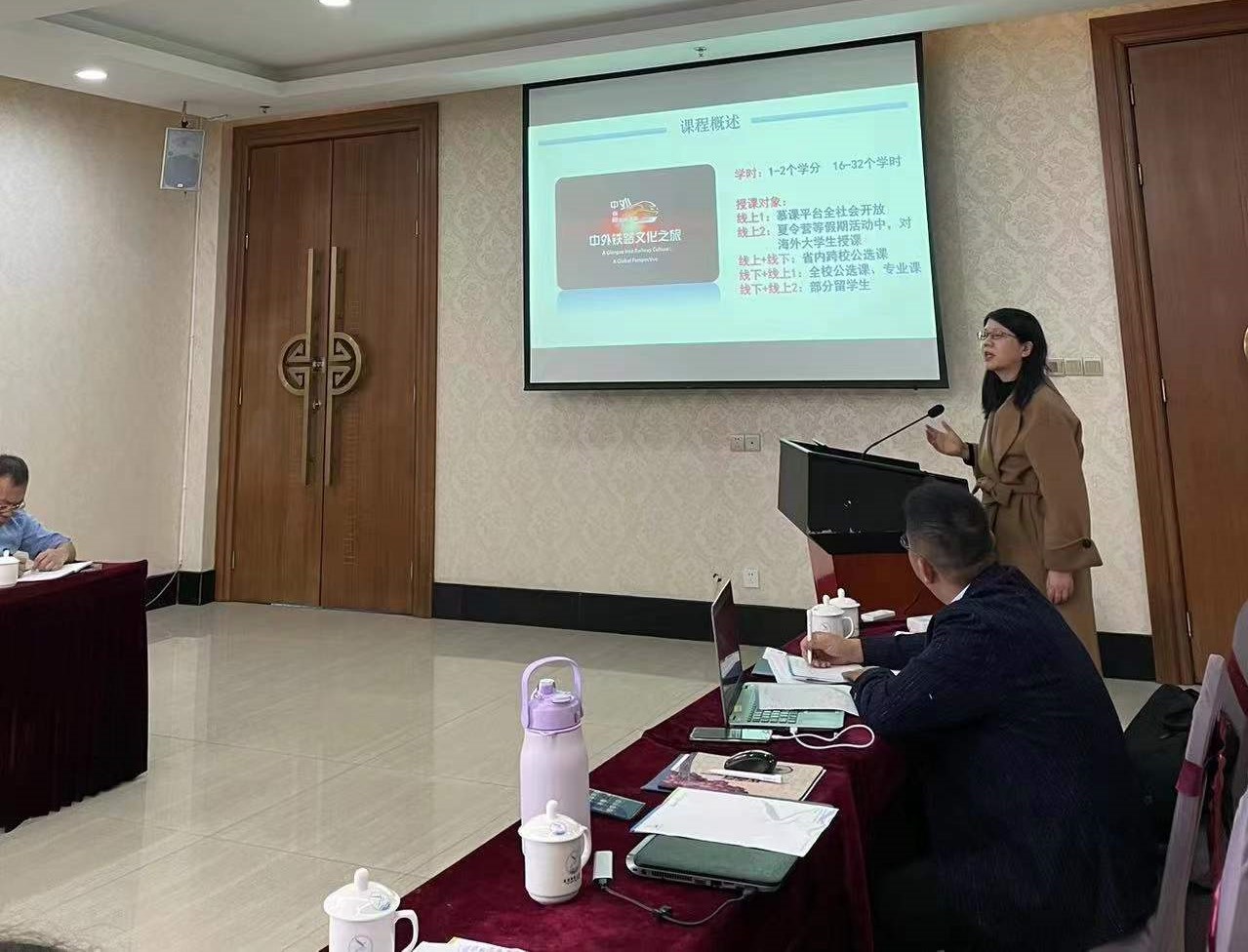 教育部课程思政教学名师、江西省外语课程思政教学与研究分会会长东华理工大学廖华英教授为全体老师做了“课程思政示范课建设与申报”的专题讲座,以“中国文化概况(英)”“一课四金”建设为例,诠释了课程思政示范课的内涵与实现路径,提出了课程思政示范课申报书撰写的常规性问题和解决方案。