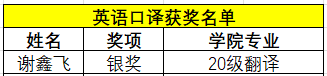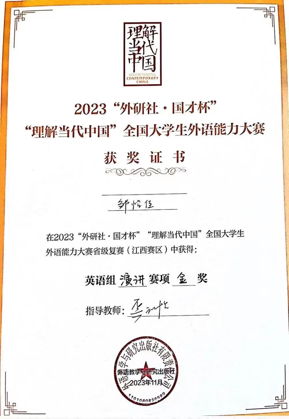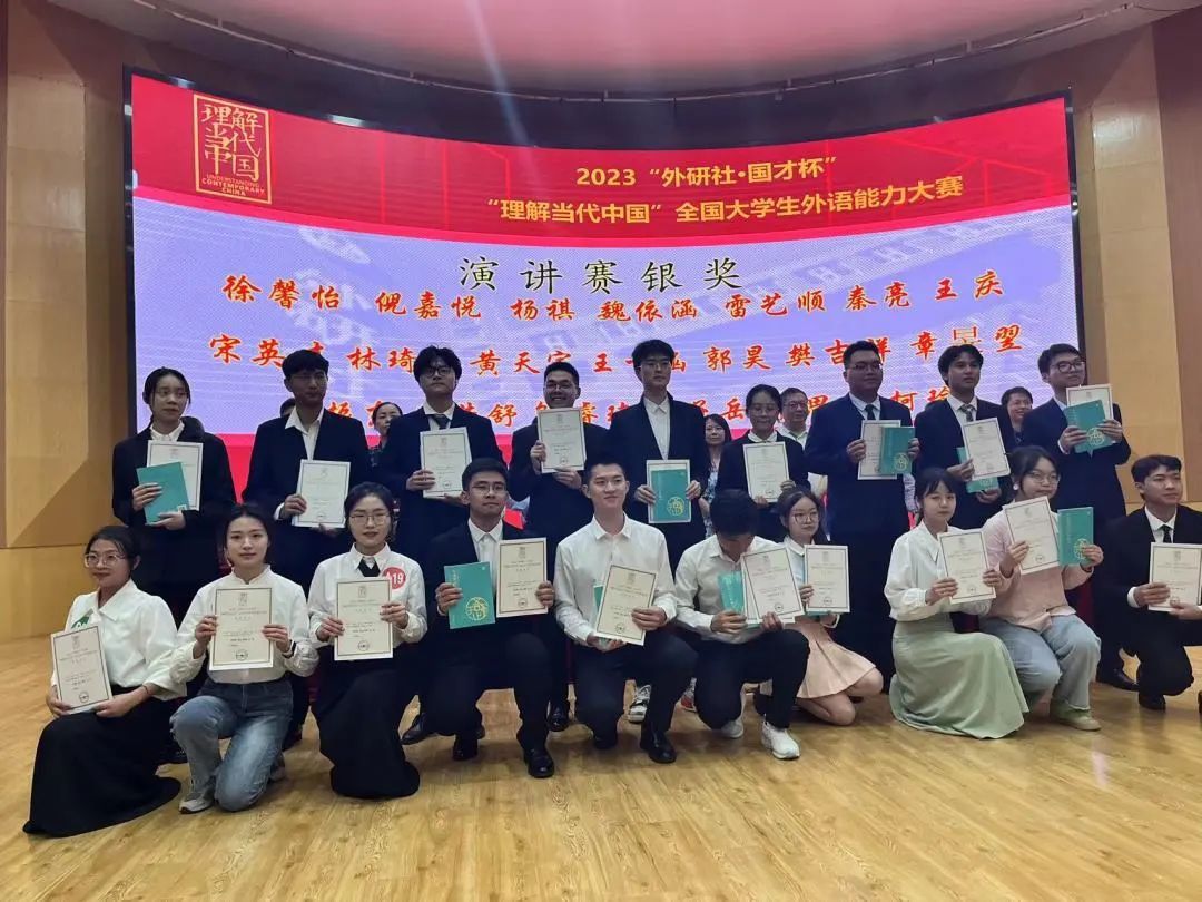 共有9名学子荣获佳绩。22级翻译专业邹怡佳在演讲比赛中荣获金奖并成功晋级全国决赛,20级翻译专业邹啸堃在阅读比赛荣获金奖并成功晋级全国决赛。