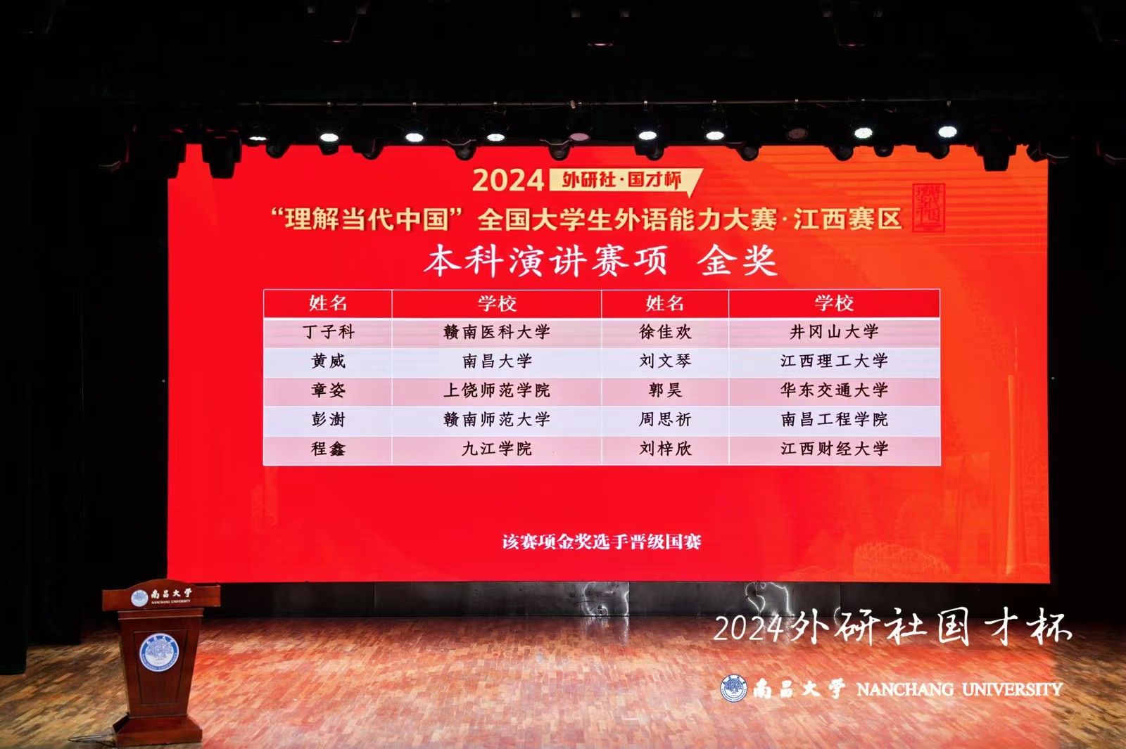 11月9日,由外语教学与研究出版社主办,南昌大学承办,江西省外语学会和江西省大学外语教学研究会共同协办的2024“外研社·国才杯” “理解当代中国”全国大学生外语能力大赛江西赛区决赛在南昌大学圆满落幕。