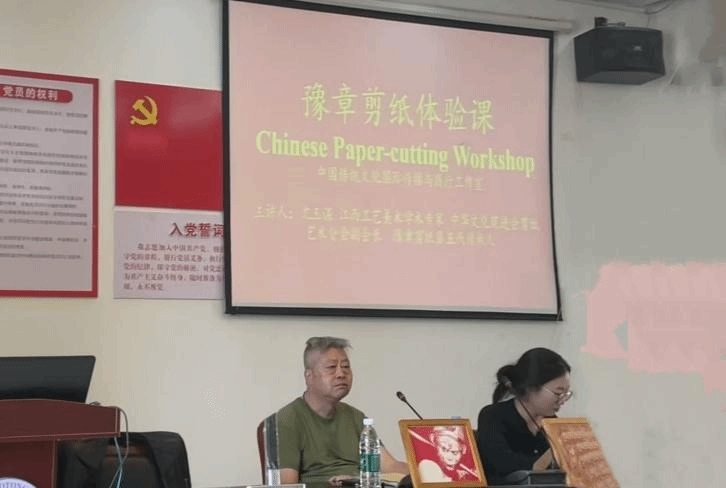 院长陆秀英出席活动,江西工艺美术学术专家、中华文化促进会剪纸艺术分会副会长、豫章剪纸第五代传承人沈玉谋主讲,2022级英语(国际贸易)专业学生和2024级留学生参加本次活动。活动由舒星老师主持。