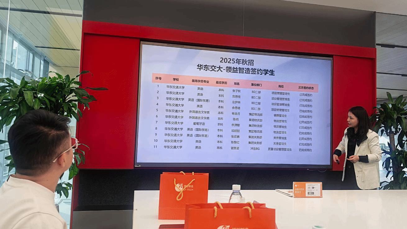 的办学特色与人才培养成果。他表示,学院坚持“外语+”复合型培养模式,聚焦商务英语、跨文化交际、国际传播等方向,2026届毕业生涵盖英语、翻译、国际物流等专业,具备扎实的语言功底、跨文化沟通能力及一定的经贸知识储备,与领益智造全球化布局需求高度契合。“此次访企不仅是为毕业生‘找岗位’,更是为学院‘找方向’。我们将以企业需求为导向,优化课程设置与实践教学,推动人才培养与产业需求精准对接。”薛先庆强调。